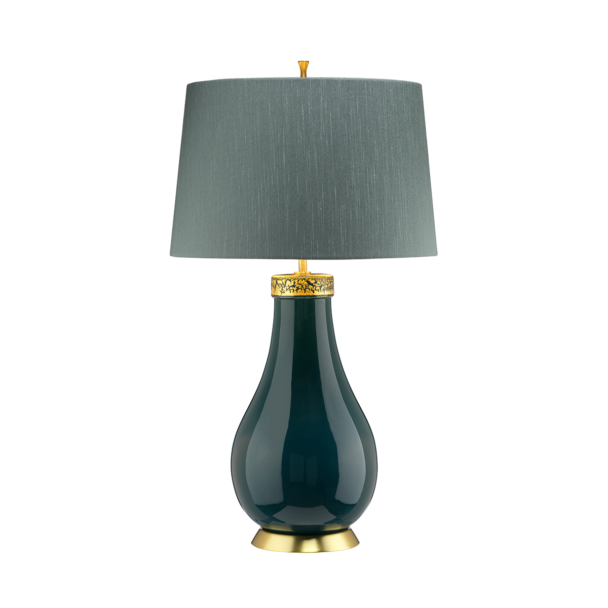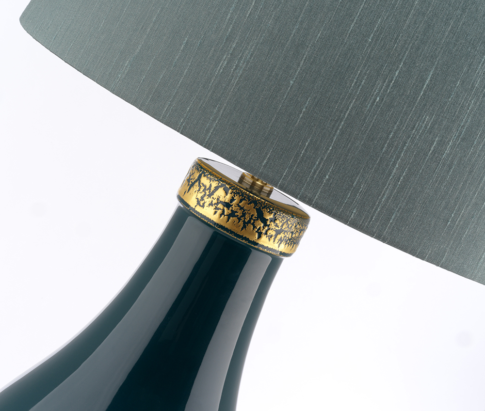 Настольная лампа Elstead Lighting QN-HAVERING-TL. Тёмно-бирюзовая керамическая основа с золотым кракелюром в верхней части и цоколем с покрытием «состаренная латунь». В комплекте конический абажур из искусственного шёлка, цвет «дымчато-зелёный», с золотистой ламинацией изнутри. Идеально подойдет для освещения гостинной, кабинета, спальни.